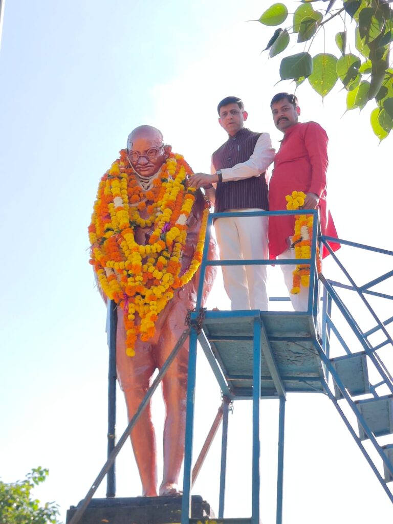 महापौर श्री पुष्यमित्र भार्गव द्वारा राष्ट्रपिता महात्मा गांधी और पूर्व प्रधानमंत्री श्री लाल बहादुर शास्त्री की प्रतिमा पर माल्यार्पण