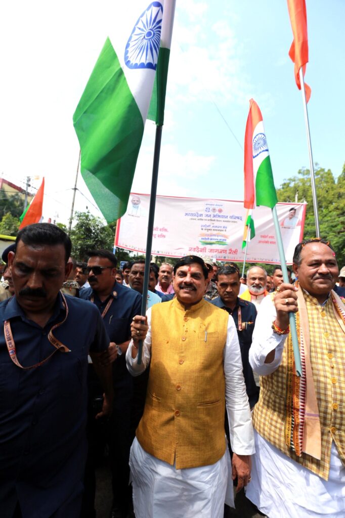 मुख्यमंत्री डॉ. यादव ने पं. दीनदयाल उपाध्याय की जयंती के अवसर पर स्वदेशी जागरण सप्ताह का शुभारंभ रवीन्द्र भवन में दीप प्रज्ज्वलित कर किया। कार्यक्रम में उन्होंने माँ भारती, महात्मा गांधी और पं. दीनदयाल उपाध्याय के चित्र पर माल्यार्पण किया। रैली के माध्यम से समाज, छात्र-छात्राएँ, उद्योग जगत और व्यापारी वर्ग को स्वदेशी वस्तुएँ अपनाने के लिए प्रेरित किया गया।