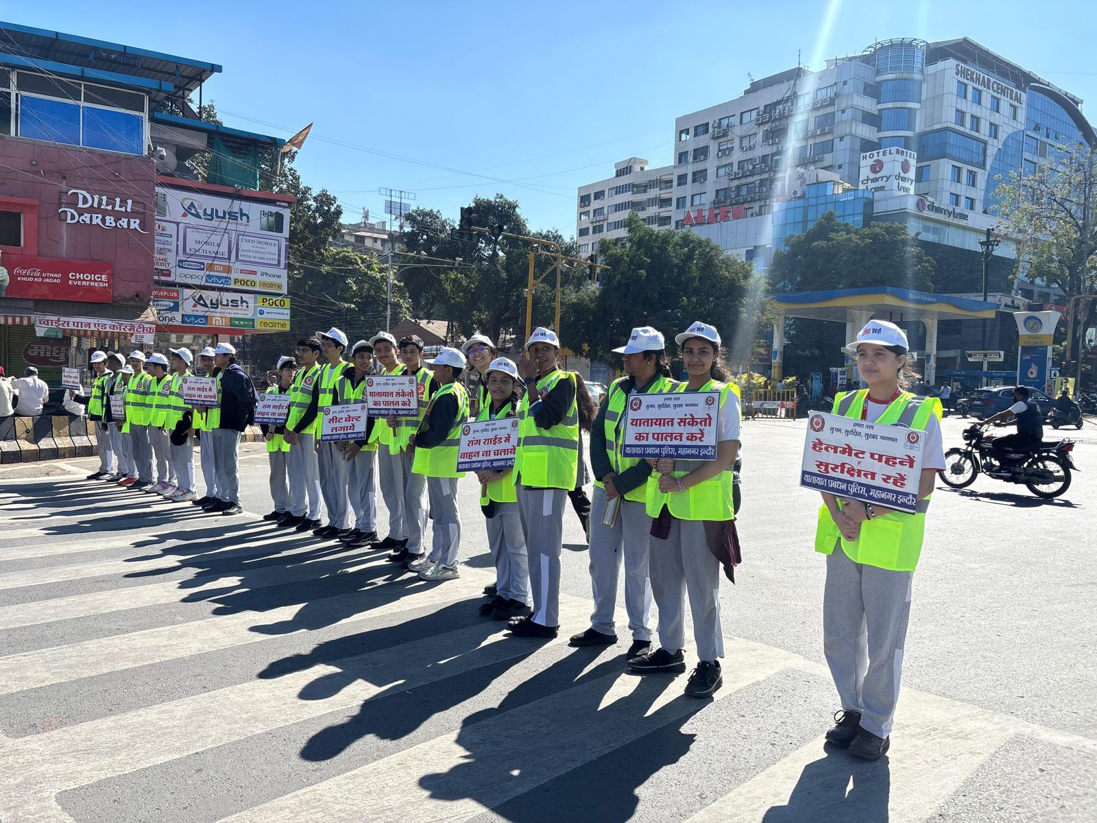 इसी कड़ी में विब्ग्योर राइज़ स्कूल्स, इन्दौर के छात्र-छात्रा और स्टाफ ने, इन्दौर ट्रैफिक पुलिस के “ट्रैफिक प्रहरी अभियान” से जुड़कर “ट्रैफिक की पाठशाला” में सड़क सुरक्षा नियमों को जाना साथ ही चौराहे पर यातायात संचालन कर, वाहनों चालको से यातायात नियमो के पालन की अपील की।