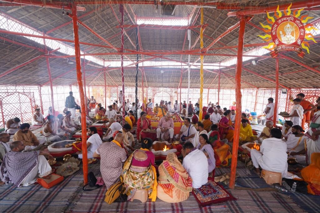 जन्मभूमि मंदिर में राजा राम दरबार व अन्य मूर्तियों की प्राण प्रतिष्ठा का चल रहा अनुष्ठान