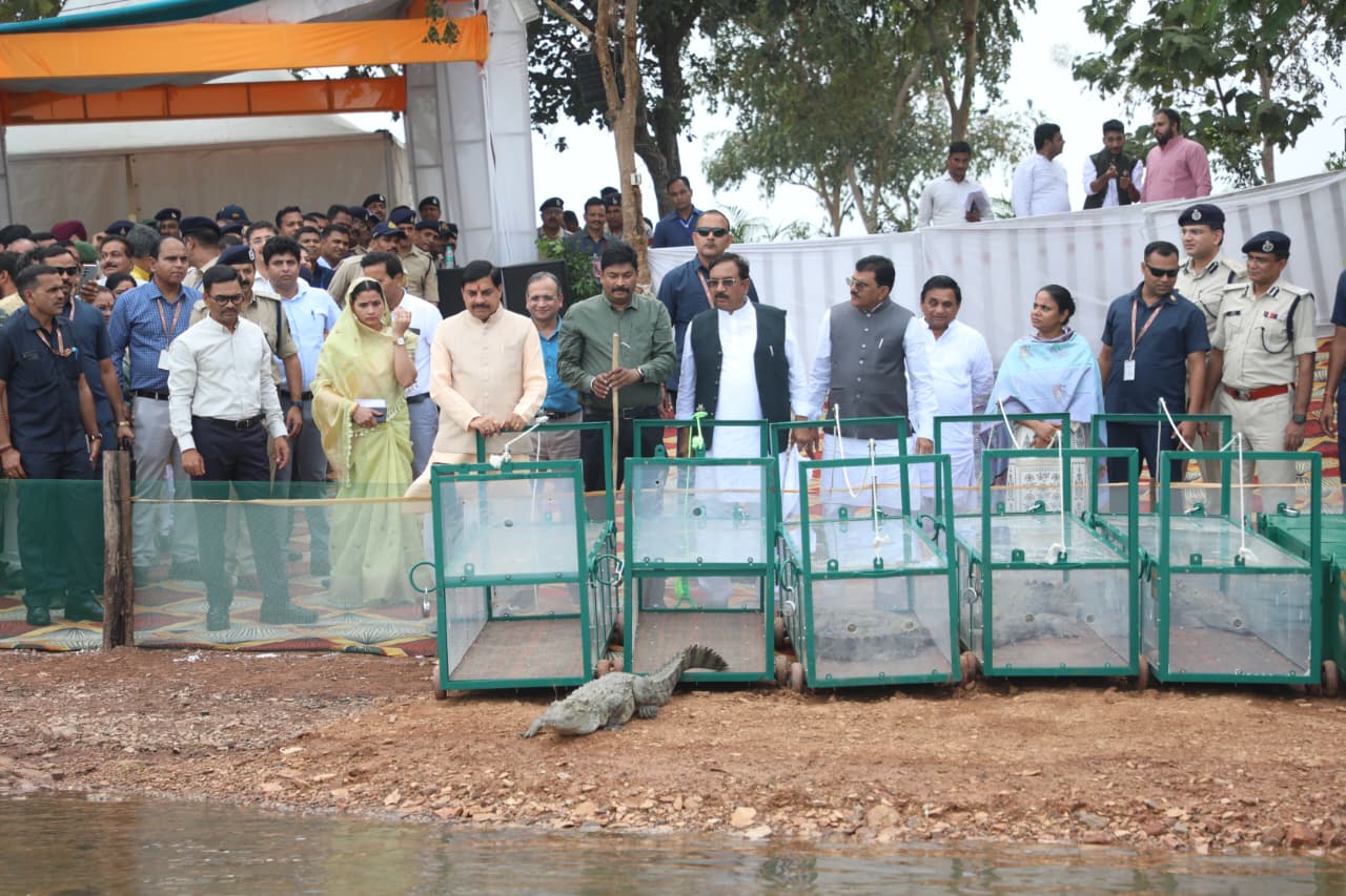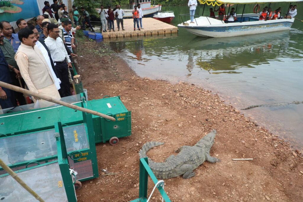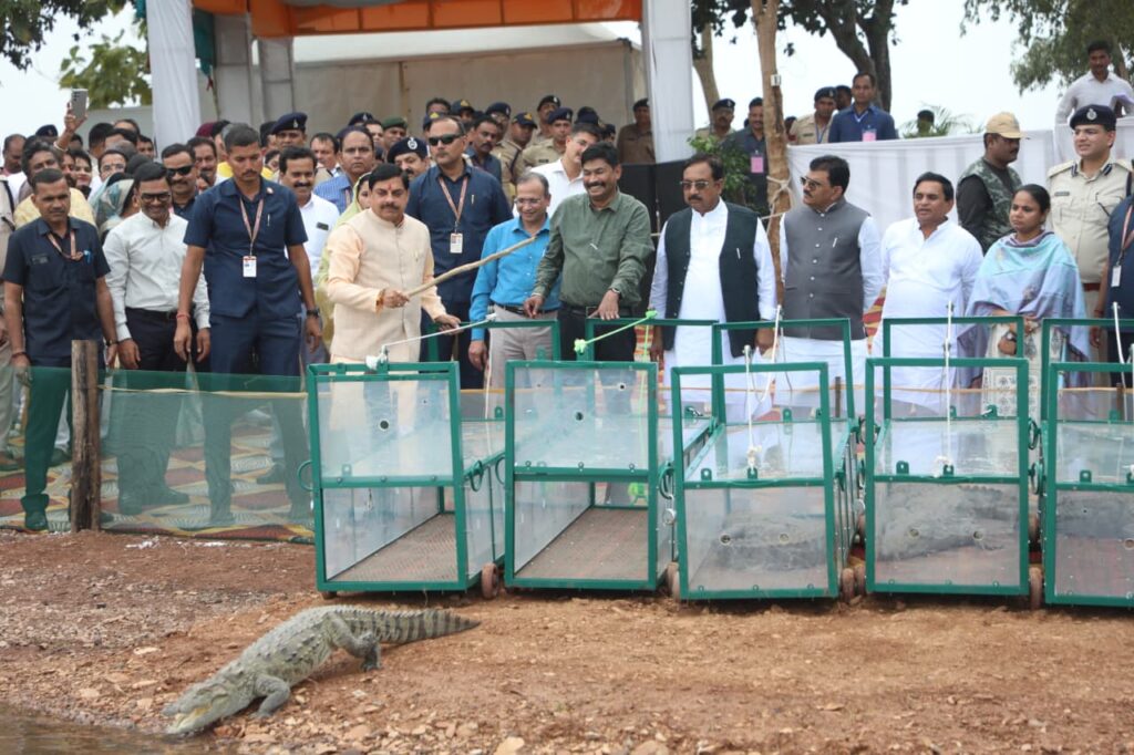 मुख्यमंत्री डॉ. मोहन यादव ने नर्मदानगर के साकल घाट पर 6 मगरमच्छों का कराया जलप्रवेश, जलीय पारिस्थितिकी संरक्षण की दिशा में बड़ा कदम
