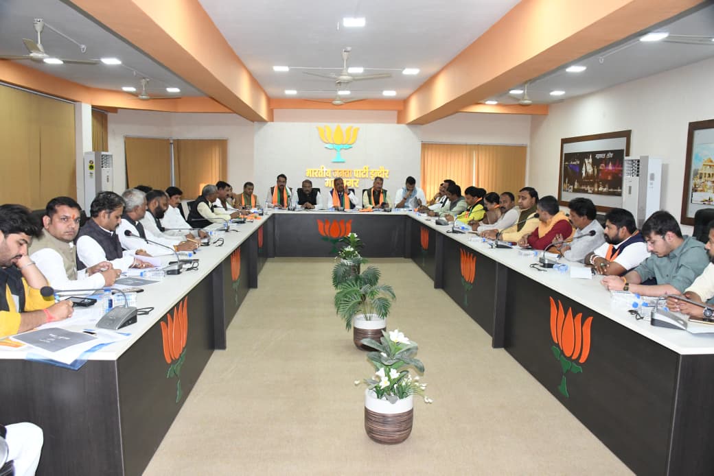 बैठक में प्रदेश महामंत्री श्री गौरव रणदिवे जी, प्रदेश उपाध्यक्ष श्री निशांत खरे जी, संभाग प्रभारी श्री रणवीर सिंह रावत जी, किसान मोर्चा प्रदेश अध्यक्ष श्री जयपाल सिंह चावड़ा जी, अभियान प्रभारी श्री जीतू जिराती जी, महापौर श्री पुष्यमित्र भार्गव जी, विधायक श्री रमेश मेंदोला जी, विधायक श्री महेंद्र हार्डिया जी, विधायक श्रीमती मालिनी लक्ष्मण सिंह गौड़ जी, विधायक श्री मधु वर्मा जी, विधायक श्री गोलू शुक्ला जी और जिला अध्यक्ष श्री श्रवण सिंह चावड़ा जी सहित पार्टी के विभिन्न मोर्चों एवं प्रकोष्ठों के पदाधिकारी उपस्थित रहे।