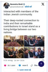 प्रधानमंत्री मोदी ने सोशल मीडिया पोस्ट के माध्यम से कहा कि भारतीय मूल के यहूदी समुदाय का भारत के साथ गहरा और ऐतिहासिक संबंध है। उन्होंने इस समुदाय को भारत और इज़राइल के बीच एक जीवंत सेतु बताते हुए कहा कि दोनों देशों के रिश्तों को मजबूत बनाने में इनका योगदान बेहद महत्वपूर्ण है।