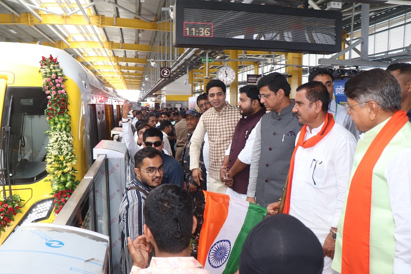 इंदौर के इस समारोह में केंद्रीय शहरी विकास एवं आवास मंत्री तोखन साहू, प्रदेश के नगरीय विकास मंत्री कैलाश विजयवर्गीय, सांसद शंकर लालवानी, महापौर पुष्यमित्र भार्गव, विधायक रमेश मेंदोला, मधु वर्मा, गोलू शुक्ला सहित अन्य जनप्रतिनिधि और मप्र मेट्रो रेल कॉरपोरेशन के अध्यक्ष जयदीप विशेष रूप से मौजूद थे। विशेष बात यह रही कि यह परियोजना लोकमाता देवी अहिल्याबाई होल्कर की 300वीं जयंती के पावन अवसर पर शुरू की गई । इससे न केवल शहर के विकास को एक नई दिशा मिली है, बल्कि यह पहल महिला सशक्तीकरण की दृष्टि से भी महत्वपूर्ण है।