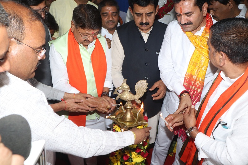 कार्यक्रम का शुभारंभ उत्सवी वातावरण में हुआ। अतिथि केन्द्रीय राज्य मंत्री तोखन साहू और प्रदेश के मंत्री कैलाश विजयवर्गीय कार्यक्रम स्थल पर पहुंचे और उन्होंने सर्व प्रथम मां अहिल्याबाई की प्रतिमा पर माल्यार्पण कर पुष्पांजलि अर्पित की। इस अवसर पर विधि विधान से गणेश पूजन और अन्य वास्तु पूजन भी किया गया। शंखध्वनि से पूरा वातावरण गुंजायमान हो गया। कार्यक्रम में पारम्परिक वस्त्र पहने महिलाओं ने हाथों में राष्ट्रीय ध्वज लिया हुआ था। उन्होंने भारत माता की जय उदघोष से पूरा वातावरण राष्ट्र भक्ति से ओतप्रोत कर दिया। कार्यक्रम में भोपाल से प्रधानमंत्री मोदी के उद्बोधन का प्रसारण भी सीधा दिखाया गया।