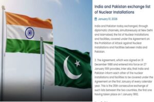 भारत-पाकिस्तान ने परमाणु प्रतिष्ठानों पर हमला निषेध समझौते के तहत सूचियों का आदान-प्रदान किया