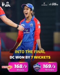 महिला प्रीमियर क्रिकेट लीग: दिल्ली कैपिटल्स ने गुजरात जायंट्स को हराकर फाइनल में बनाई जगह Read More »