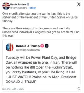 ट्रम्प के बयान पर बर्नी सैंडर्स का तीखा हमला, बोले— “खतरनाक और असंतुलित”