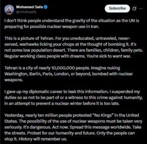यूएन अधिकारी मोहम्मद सफा का इस्तीफा, तेहरान पर संभावित परमाणु हमले को लेकर दी गंभीर चेतावनी Read More »